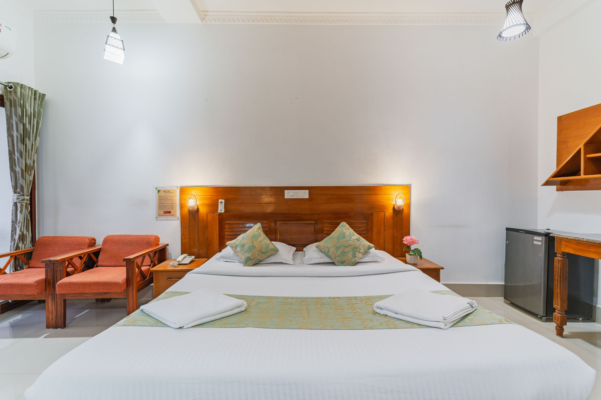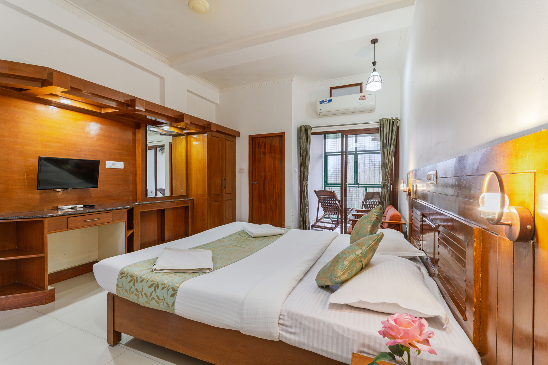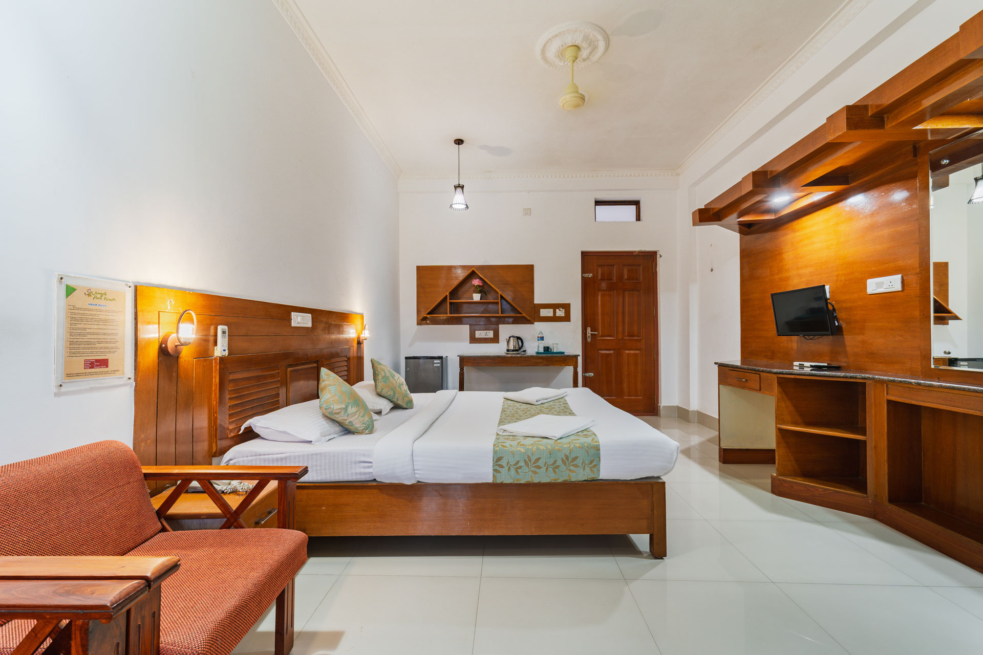 The Venus AC Room at Jungle Park Resort Thekkady is crafted for guests who seek an elevated stay experience with added comfort, convenience, and refined ambience. Fully air‑conditioned and thoughtfully furnished, this room blends modern amenities with a soft, relaxing atmosphere, making it perfect for couples, small families, or anyone desiring a touch of luxury. Enjoy seamless connectivity with free Wi‑Fi, unwind with in‑room entertainment on the TV, and rely on 24‑hour hot water and room service for a smooth, effortless stay.